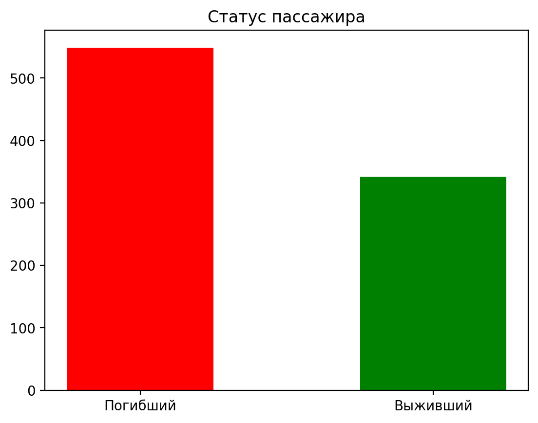 plt.show()Возьмите датасет о пассажирах Титаника с прошлого занятия и постройте следующие три графика