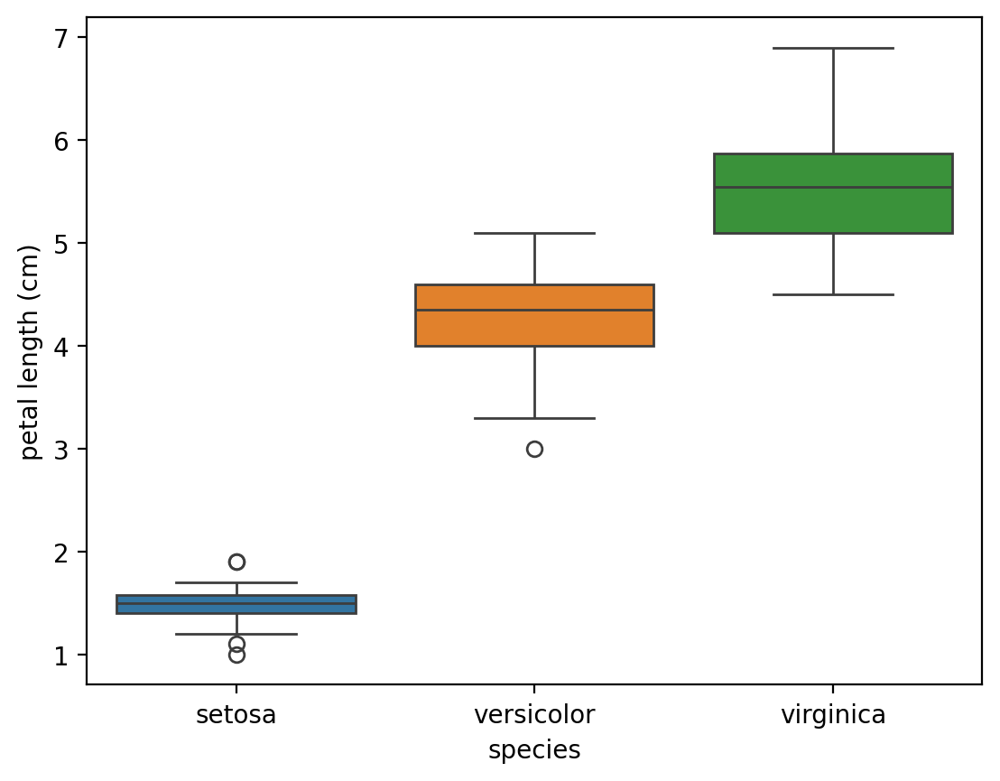 4iris_df.head()| sepal length (cm) | sepal width (cm) | petal length (cm) | petal width (cm) | species | |